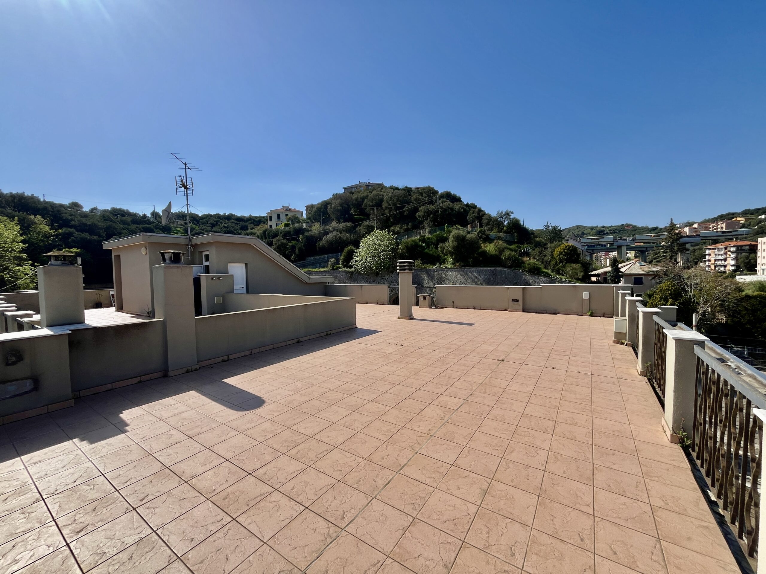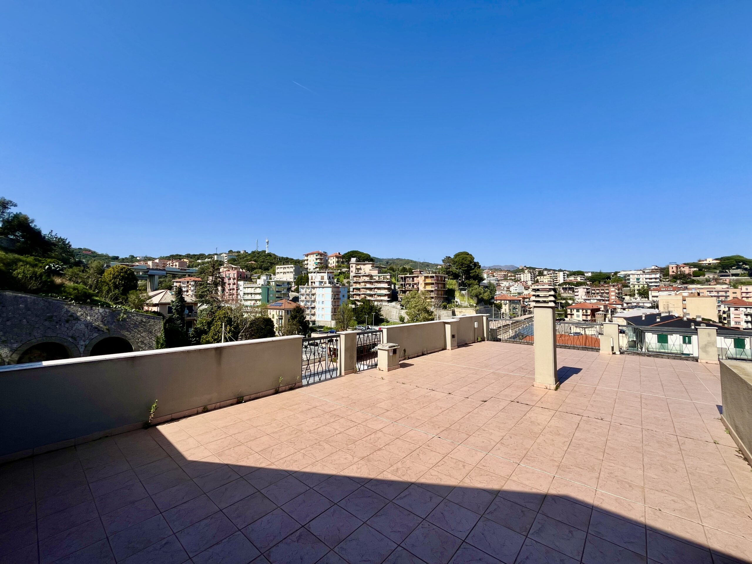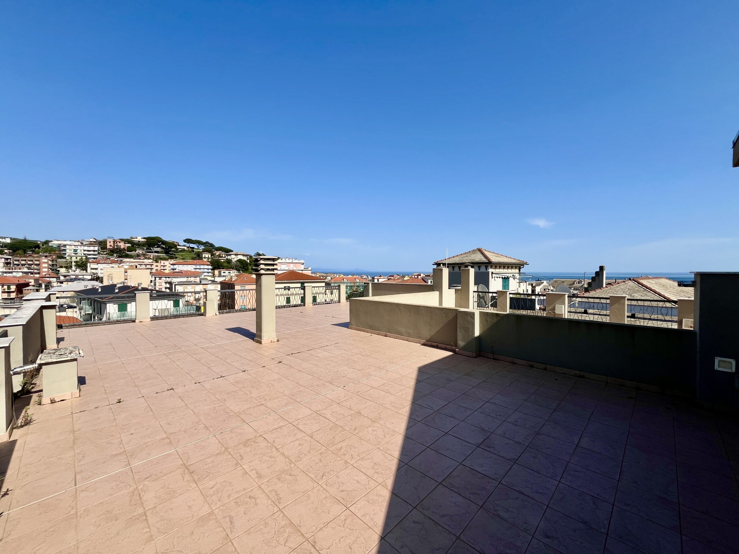 Esposizione nord-est-sud con vista aperta sul levante ligure e spazi esterni garantiti dalla presenza di due ampie balconate e di un grande terrazzo di proprietà sovrastante di circa 100 mq con vista superpanoramica mare e monti.