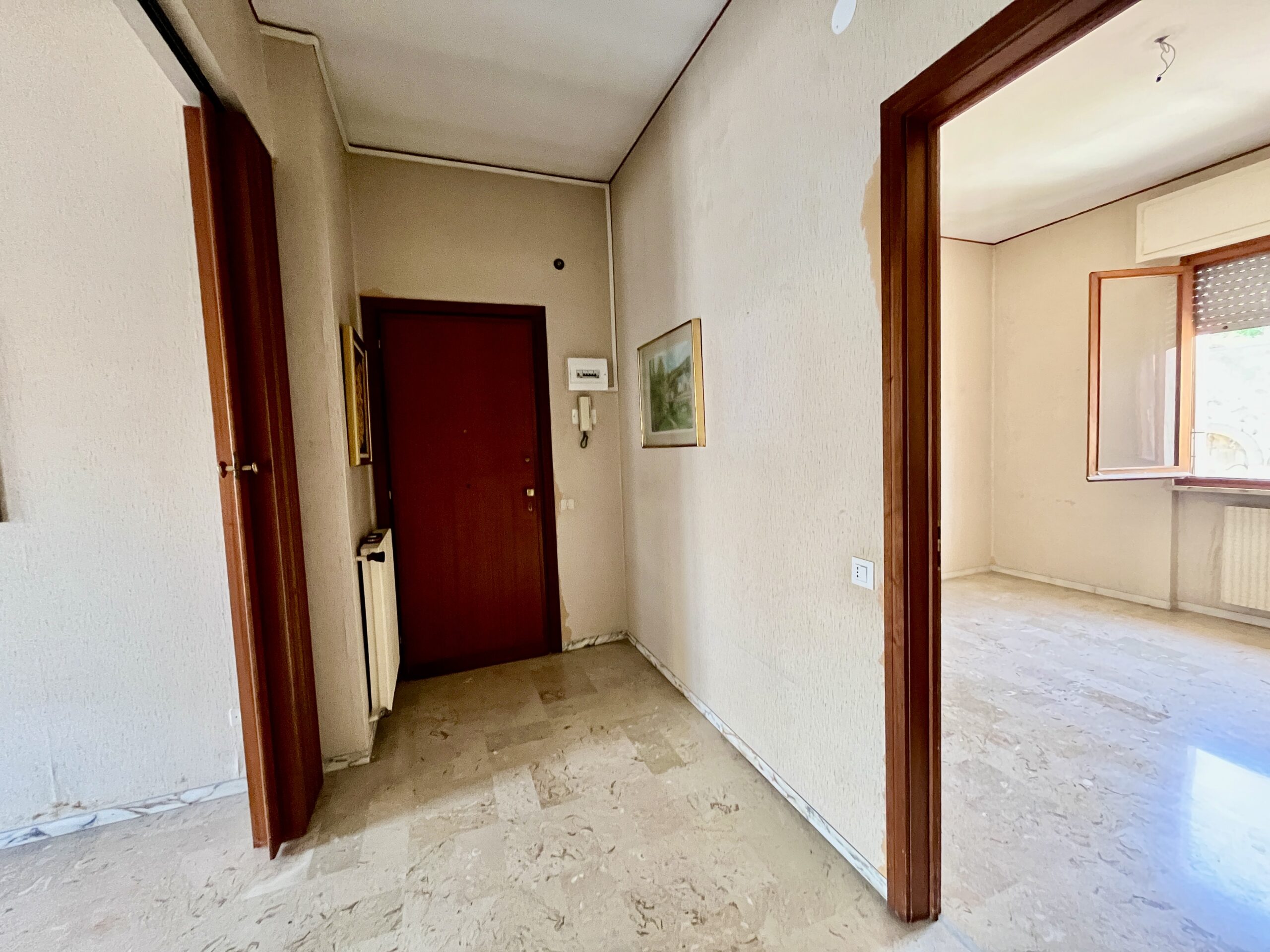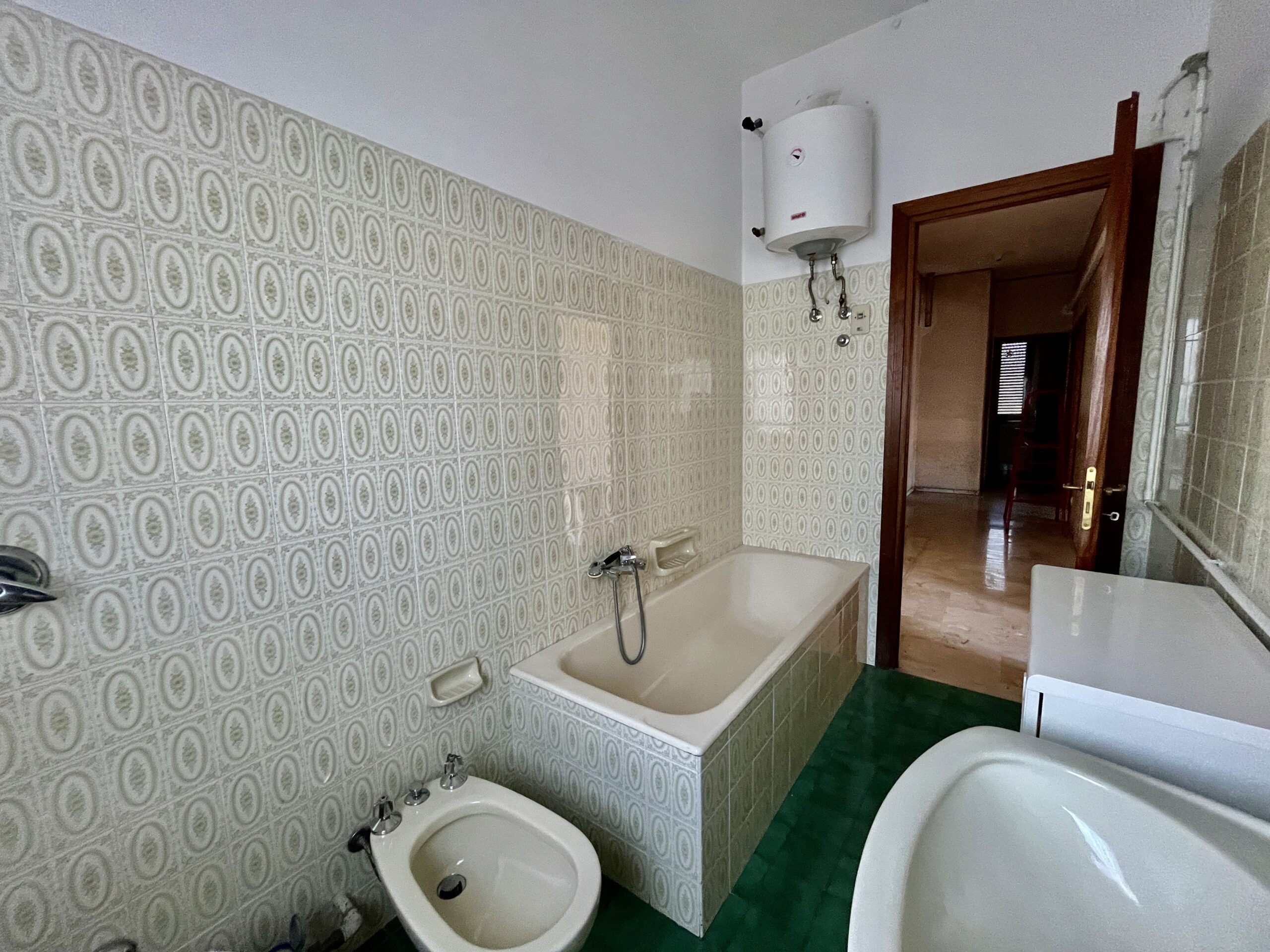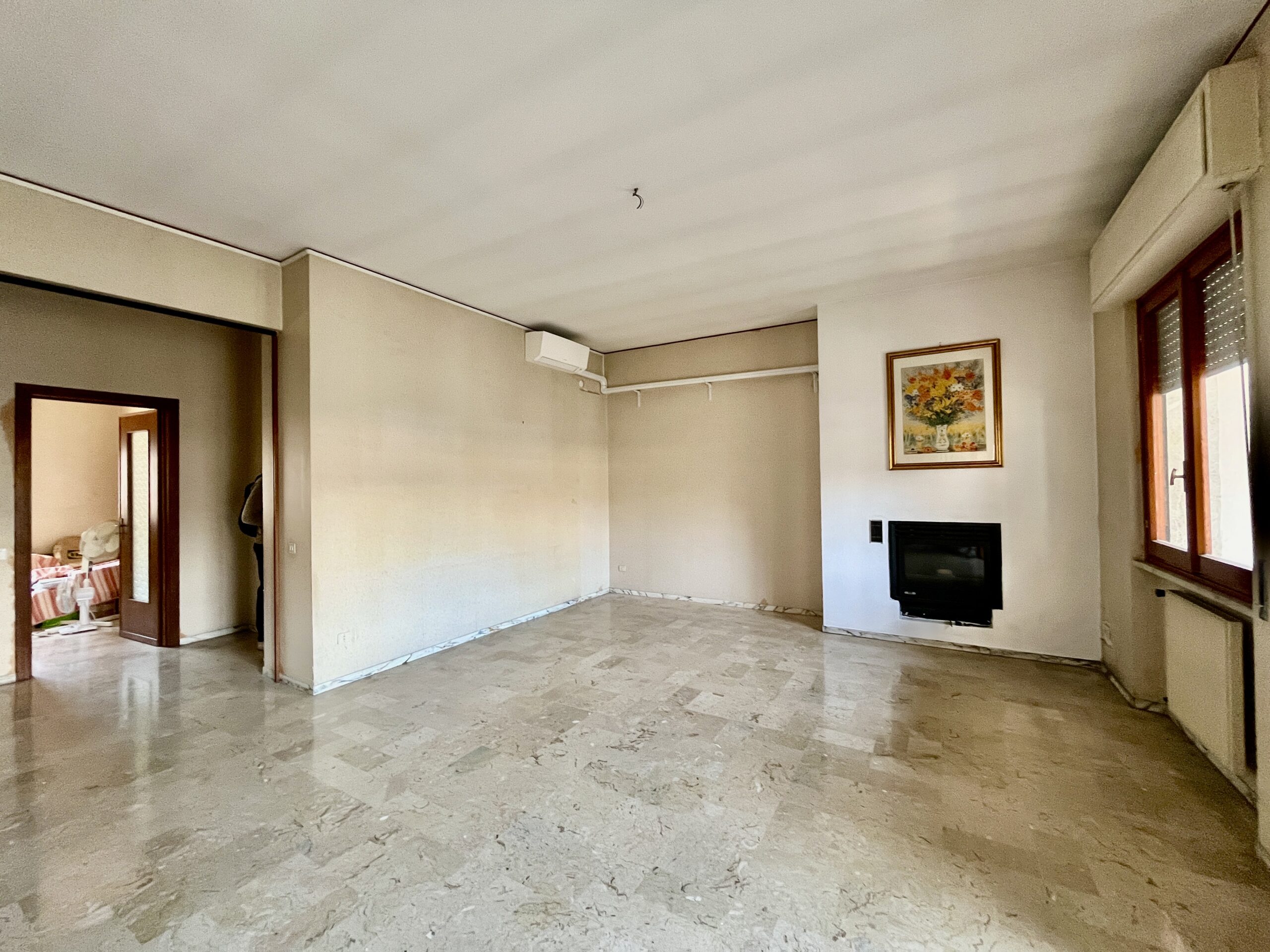 Internamente l’alloggio è composto dall’ingresso in disimpegno, quattro camere da letto, cucina abitabile, grande salone doppio con caminetto a pellet e doppi servizi.