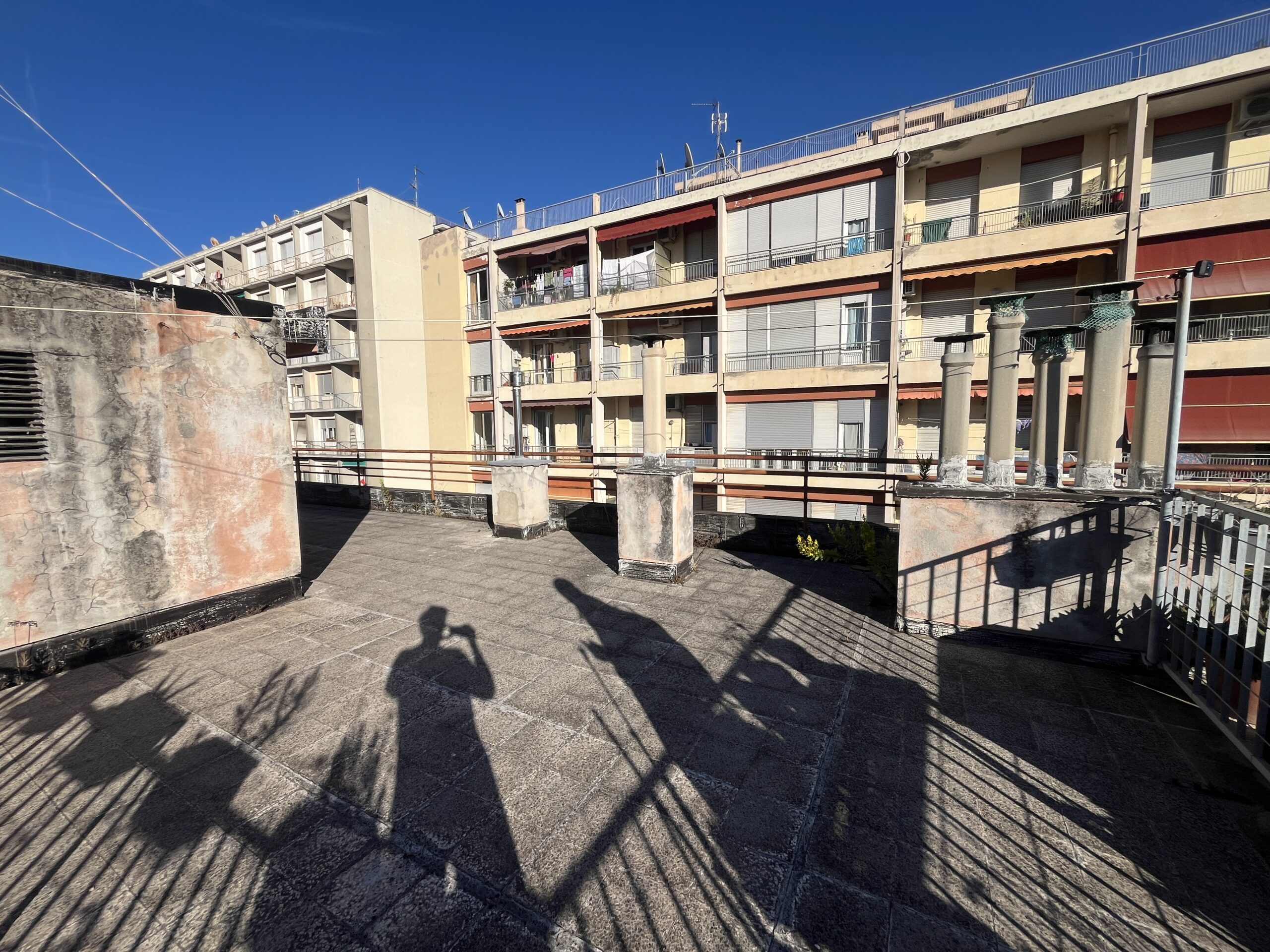Gli spazi esterni sono garantiti dal grande e soleggiato terrazzo soprastante l’appartamento da cui si può godere di una splendida vista mare.